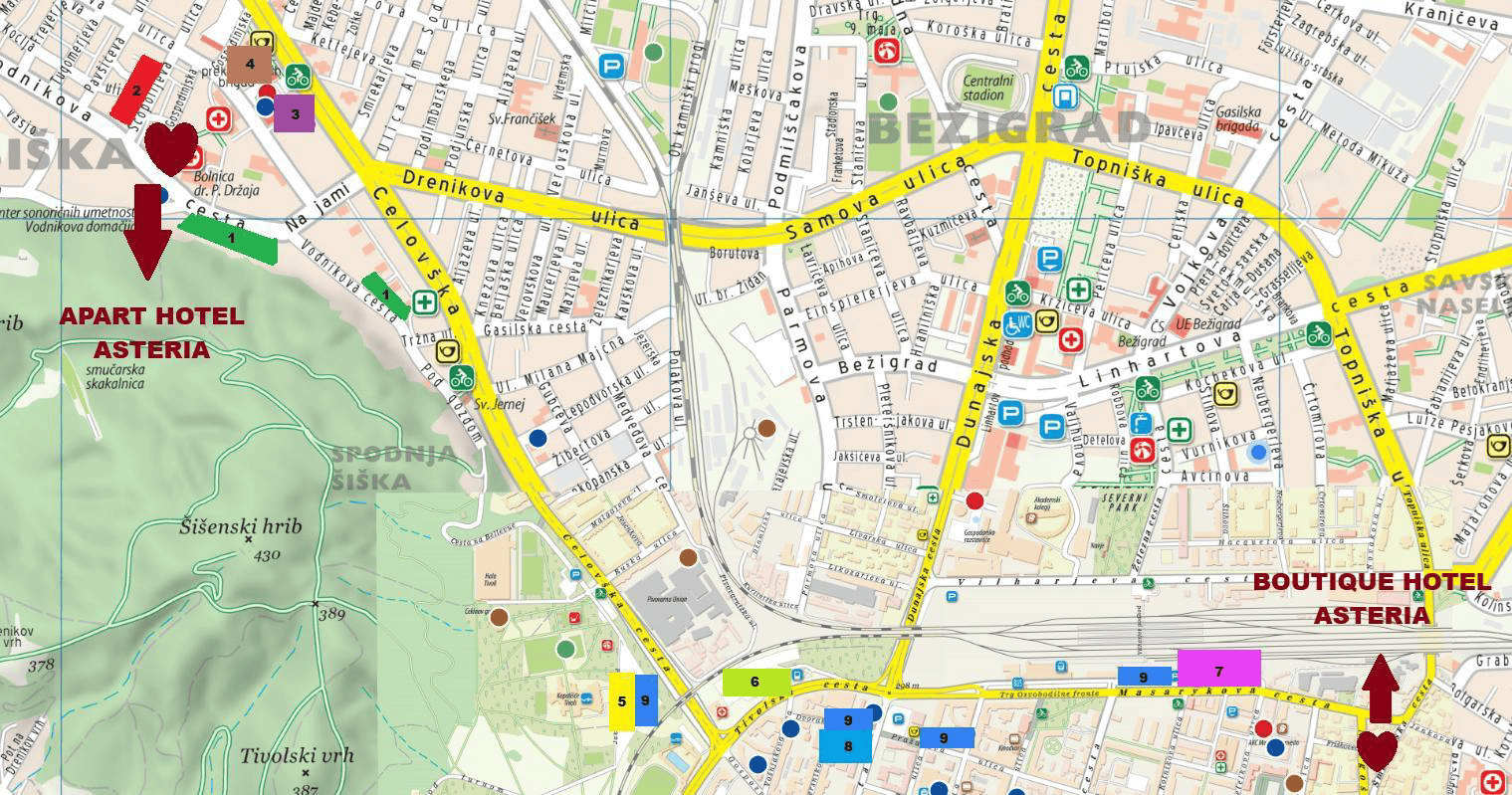 You can find us in the edge of the city center, the famous Šiška district. Read the tips bellow or contact us for more information on e-mail info@aparthotel-asteria.com or telephone number 00 386 41 542 444.